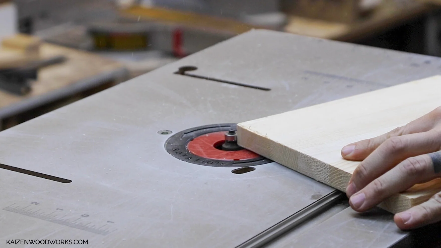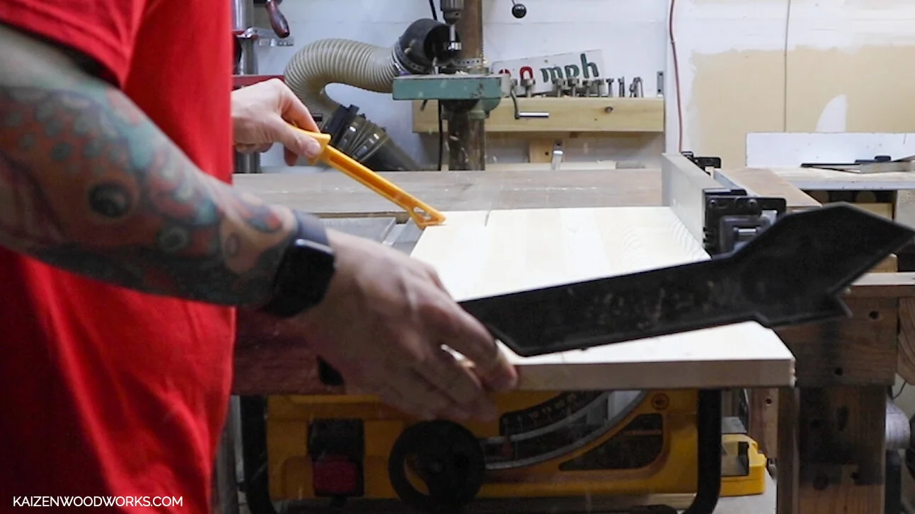 I start off with 1” x 12” x 36'“ piece of edge glued pine and cut the whole piece down to 9” wide with the table saw.