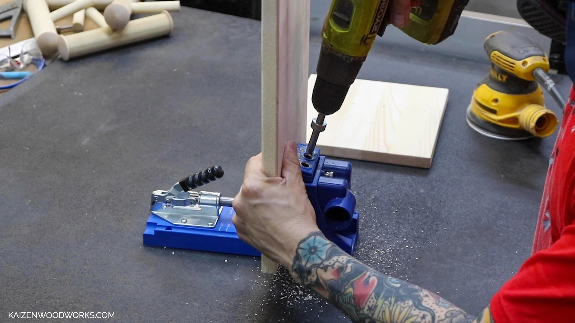 I use a Kreg pocket jig to add some pocket holes to the backside of this piece.