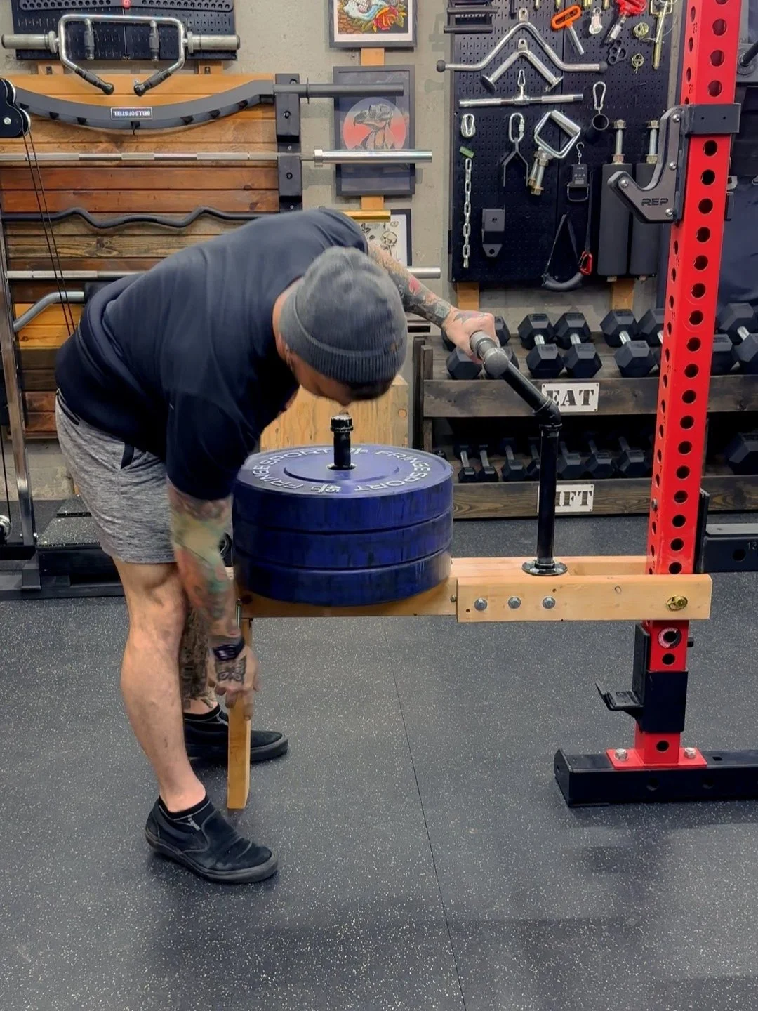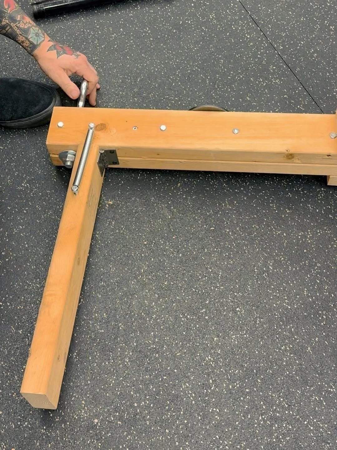 Connect it to the bottom of the belt squat using a 2 inch door hinge.