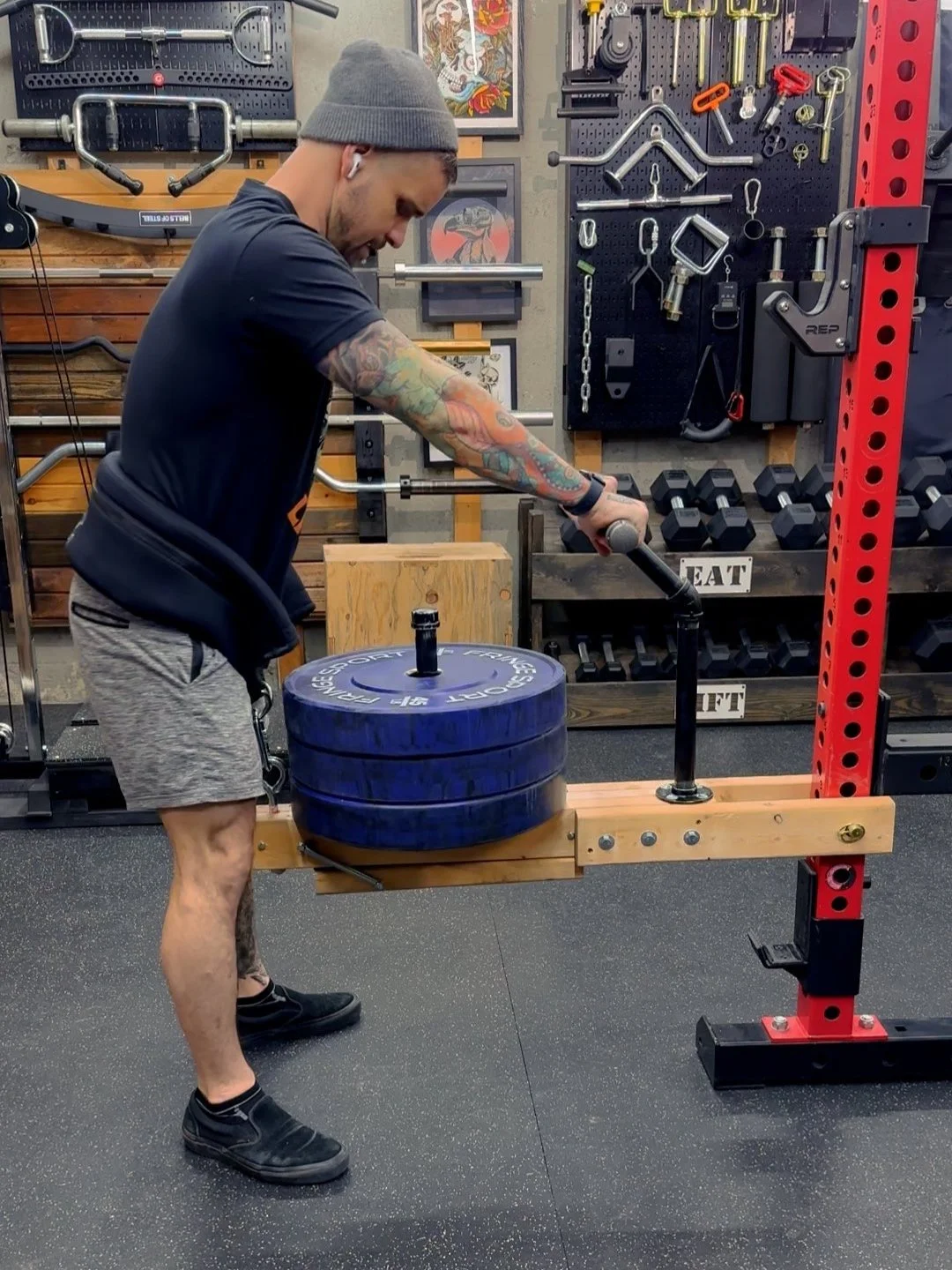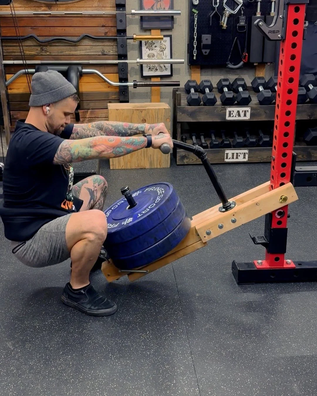 Last week I posted a video of this super cheap belt squat. I made mine from scraps, so it was free but also kind of ugly. If buying the materials, it would probably cost around $20.