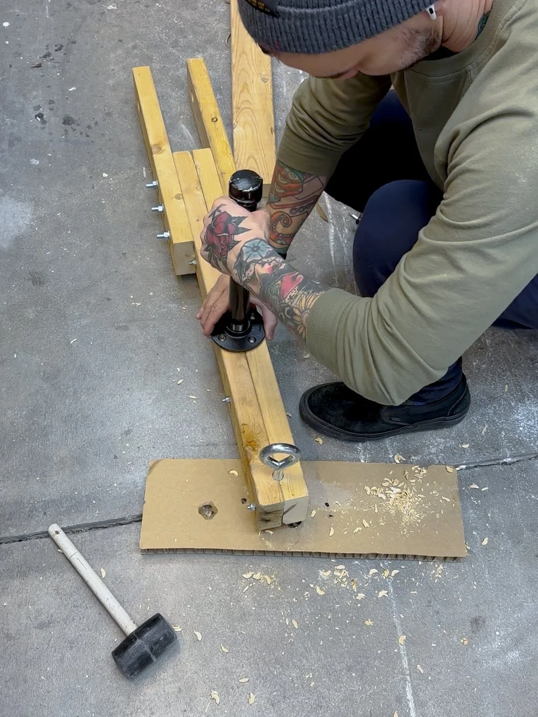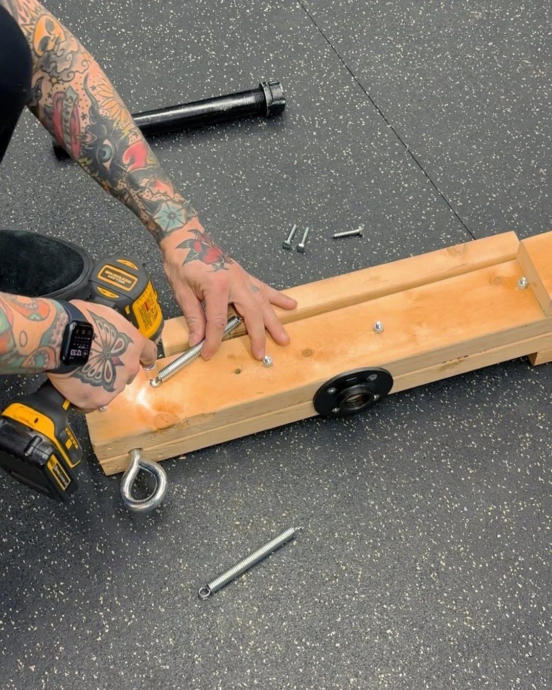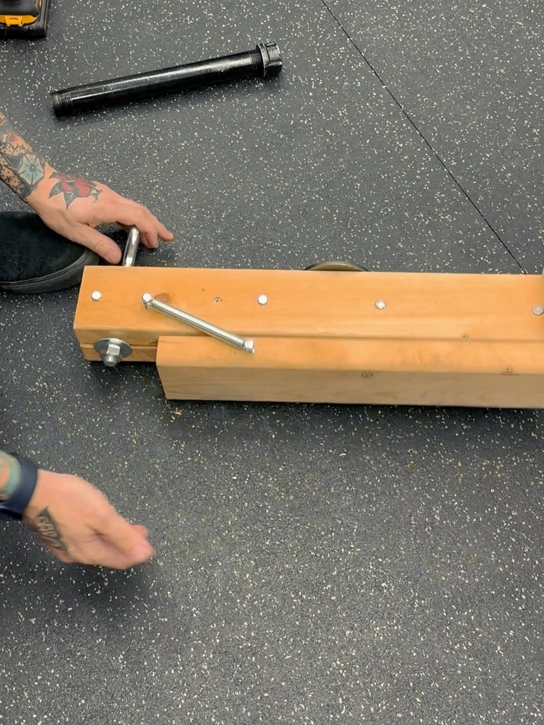 In my previous version I used a 1 3/4” dowel, but attaching these pipe fittings is an easier option