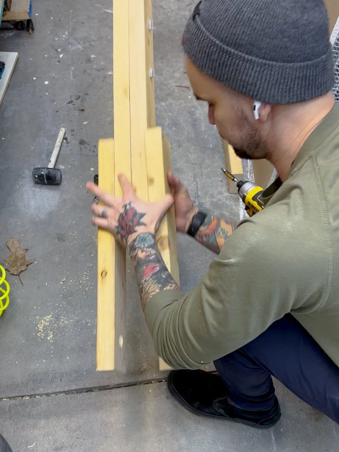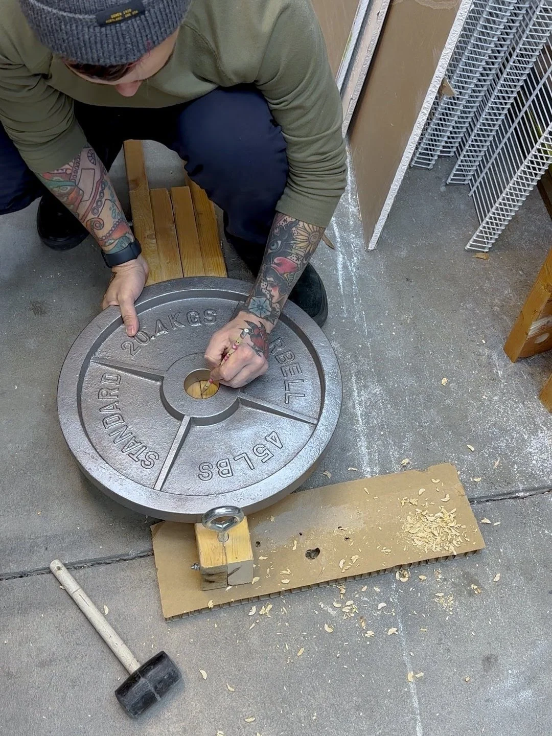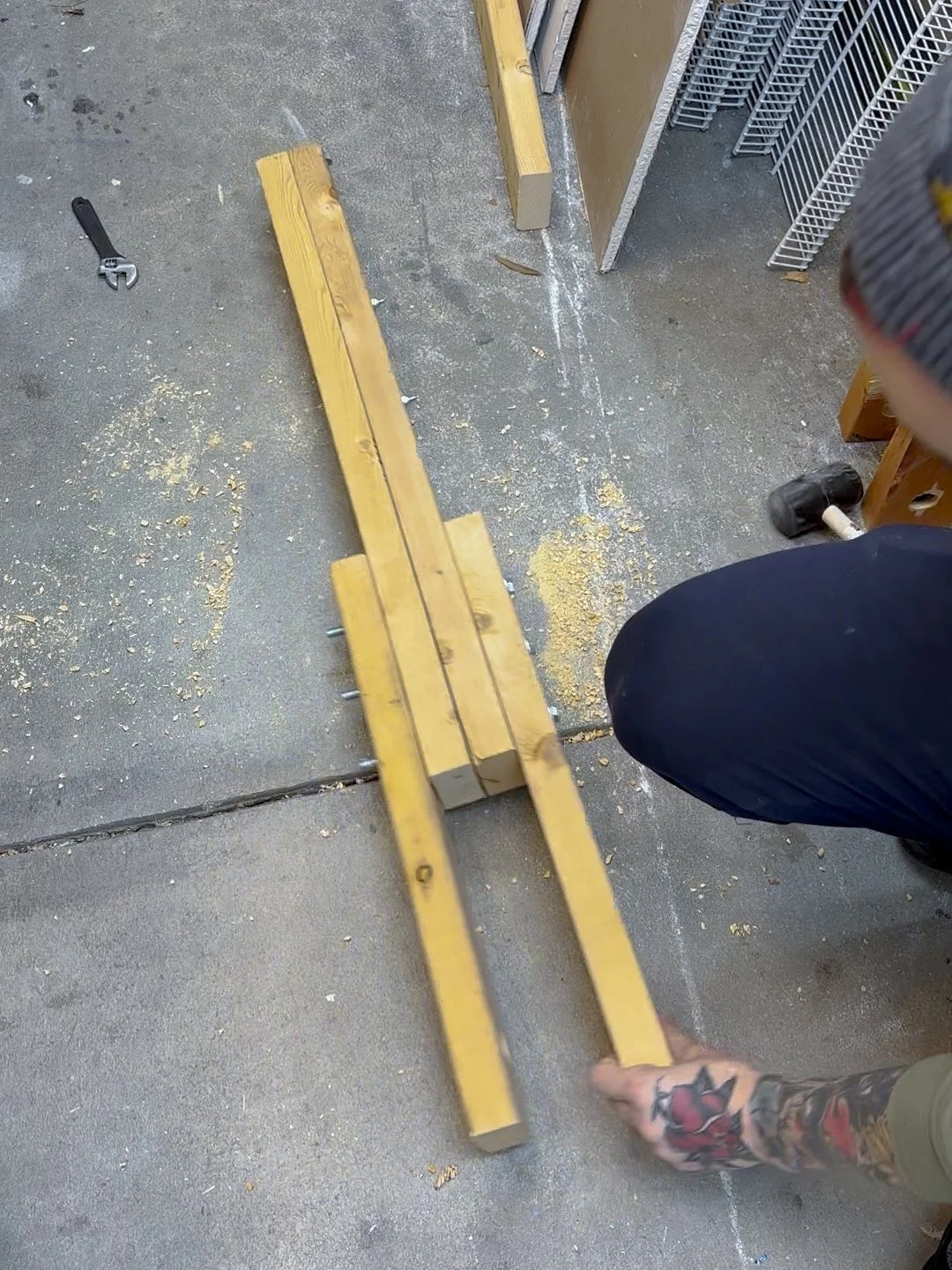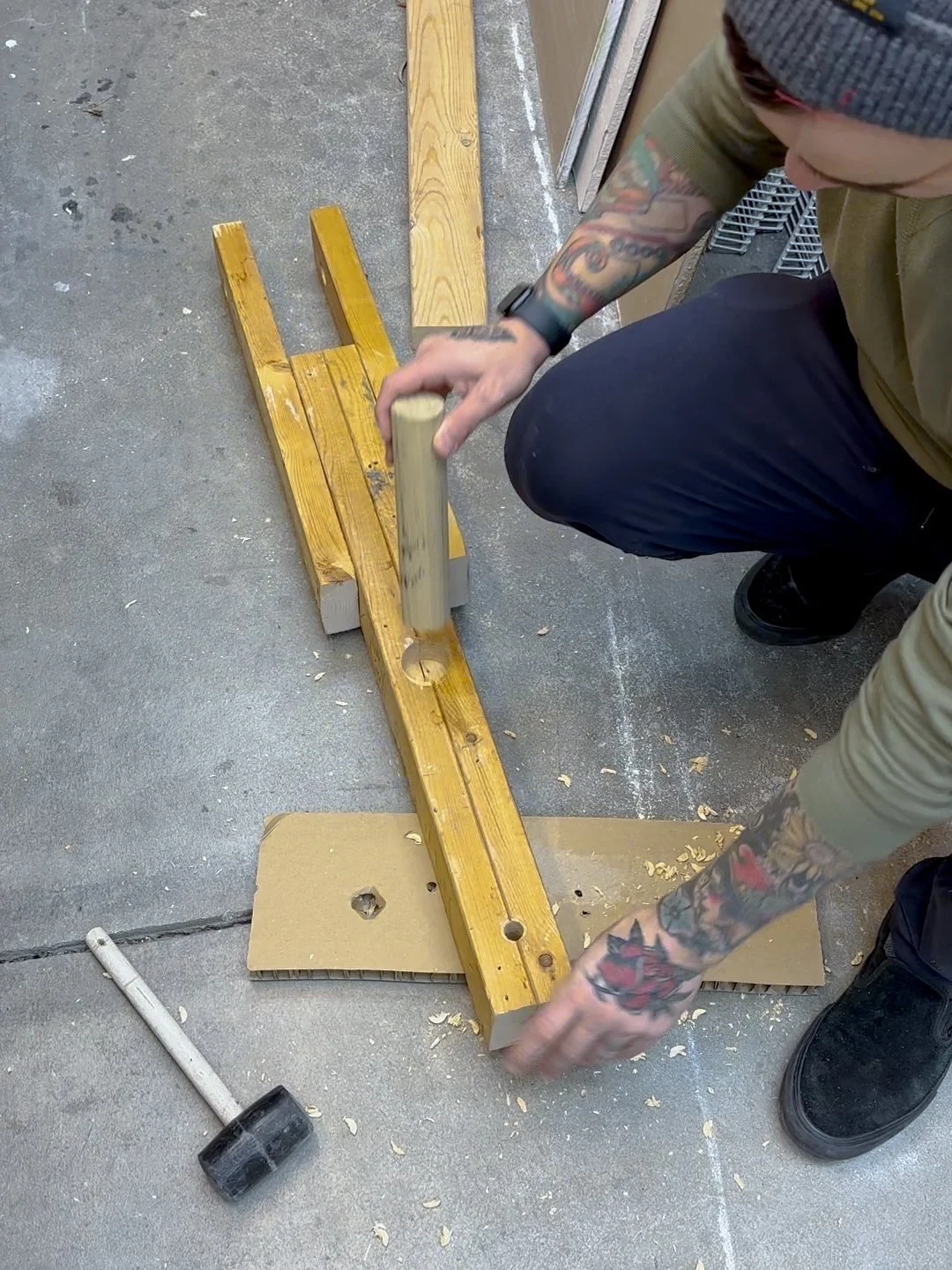 In my previous version I used a 1 3/4” dowel, but attaching these pipe fittings is an easier option