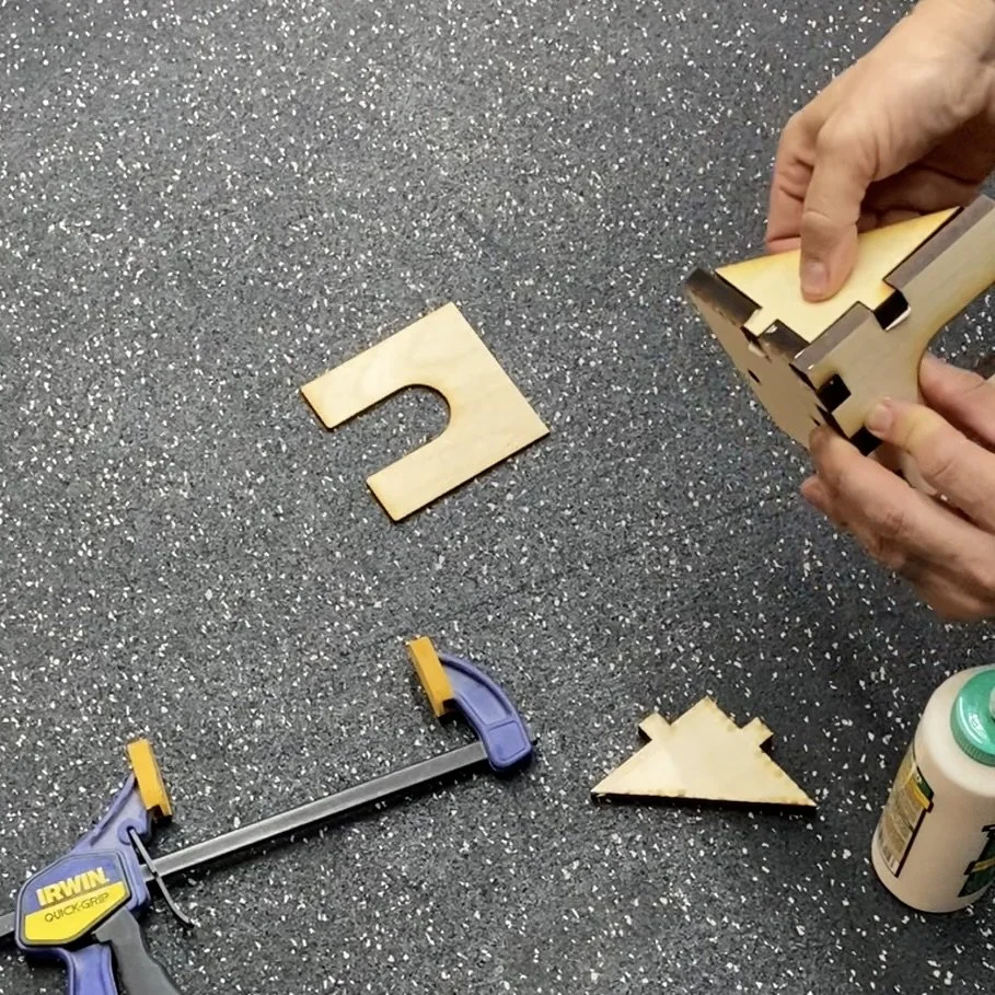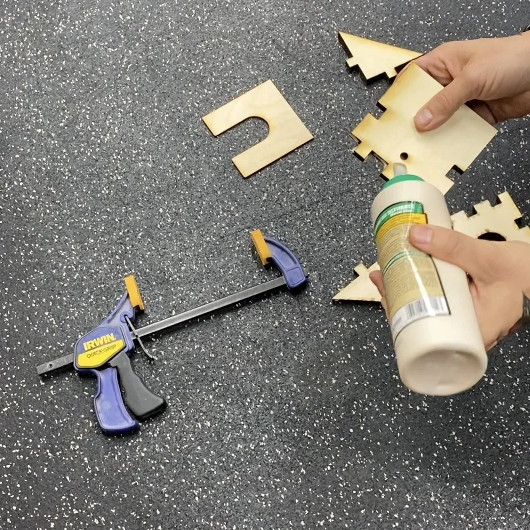 Once all the pieces are cut, I add a healthy amount of glue, assemble, and clamp.