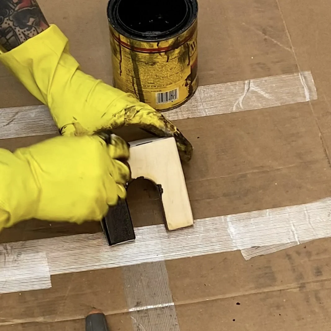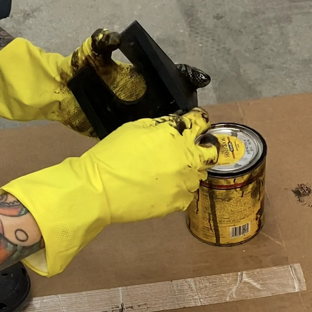 As I mentioned earlier, I am going with a dark wood stain on this one. I use the Minwax Ebony oil based wood stain. It does a great job at concealing the smoke marks and looks beautiful when it dries.