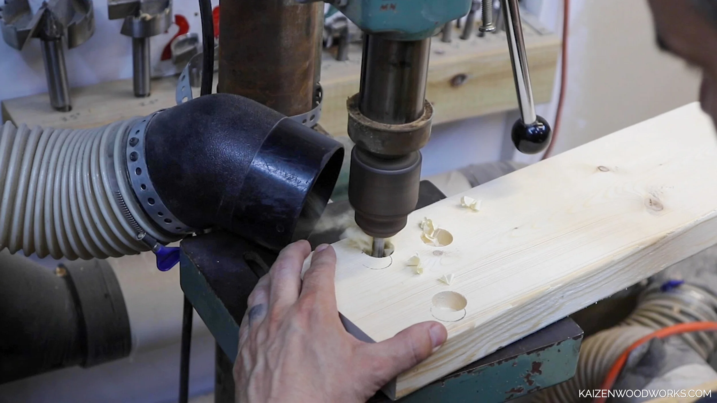 Drill press - Amazon link (https://amzn.to/3wh8beK), Home Depot link (homedepot.sjv.io/doRm3K) - alternatively, the holes can also be drilled using a cordless drill
