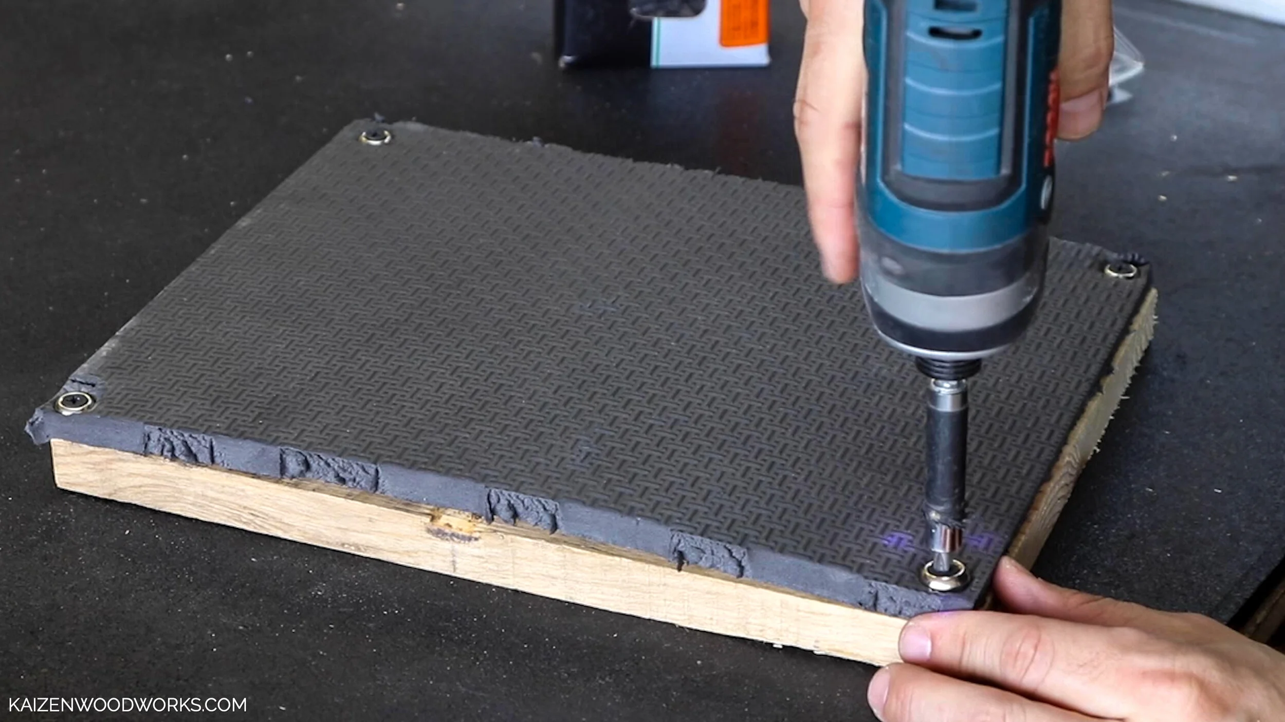 Four screws and some finishing washers attach the foam pad to the board.