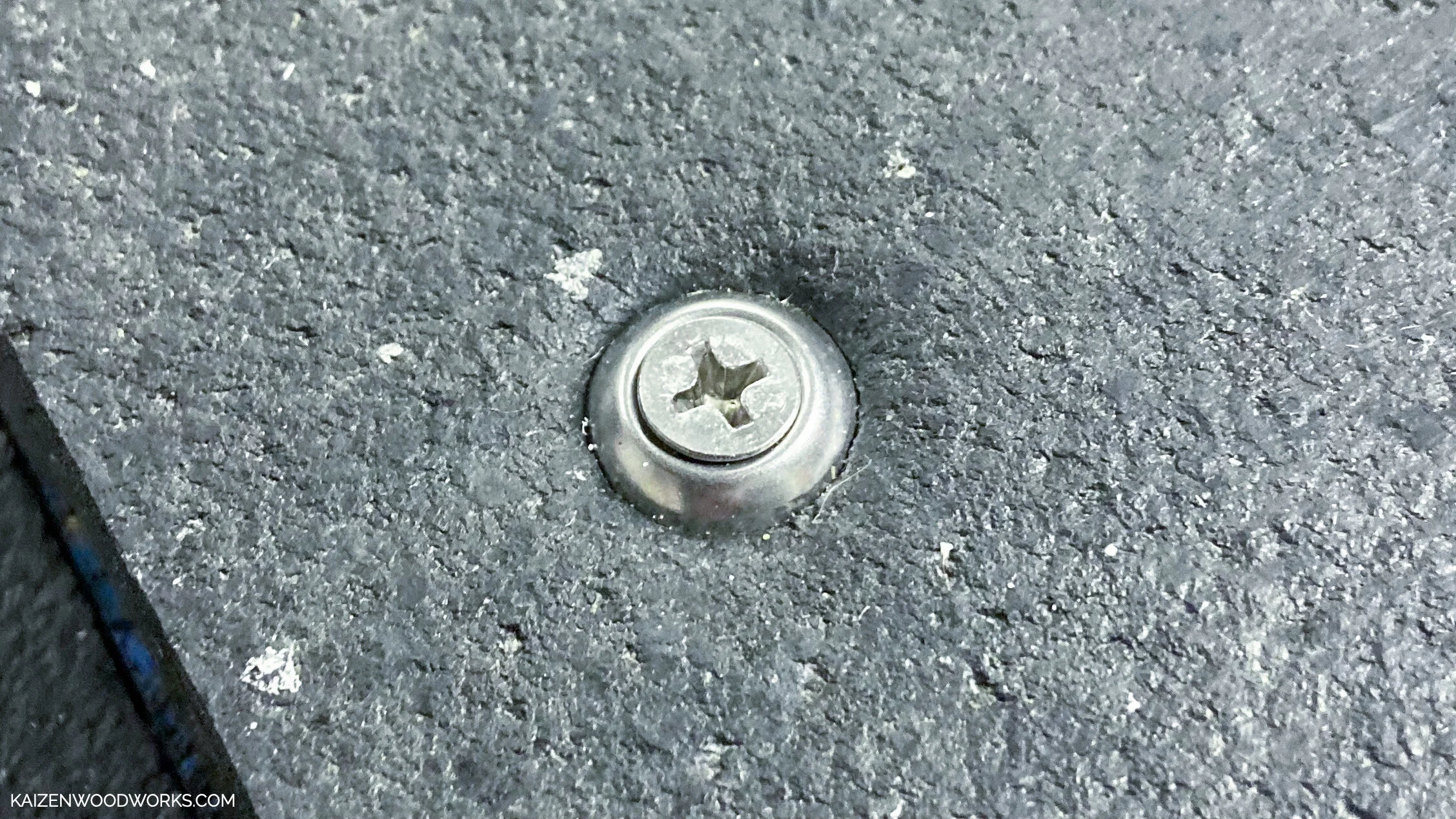I drilled holes into the maple plywood and stall mats where I wanted my screws to go. I put eight screws in each of the pieces.
