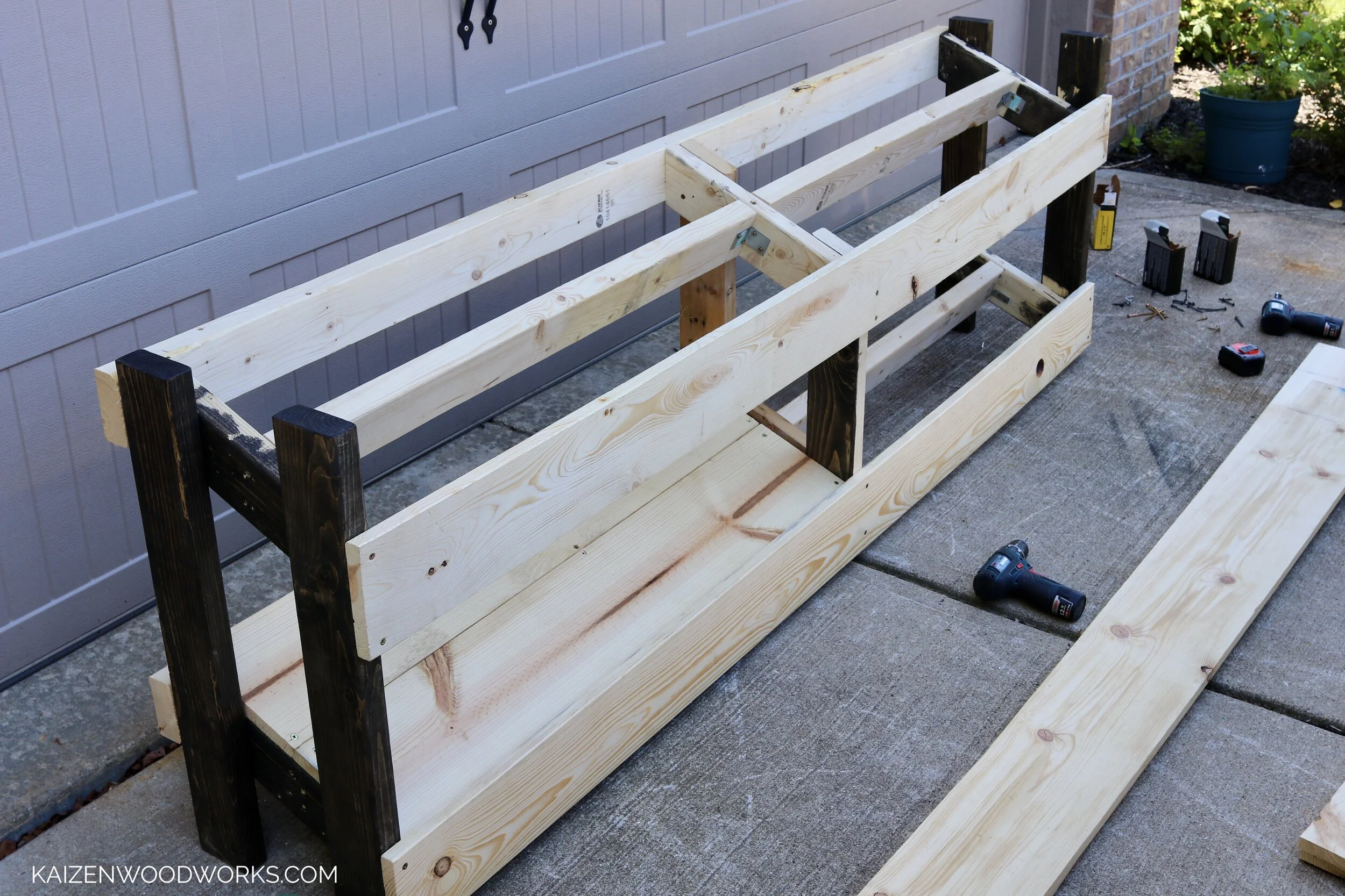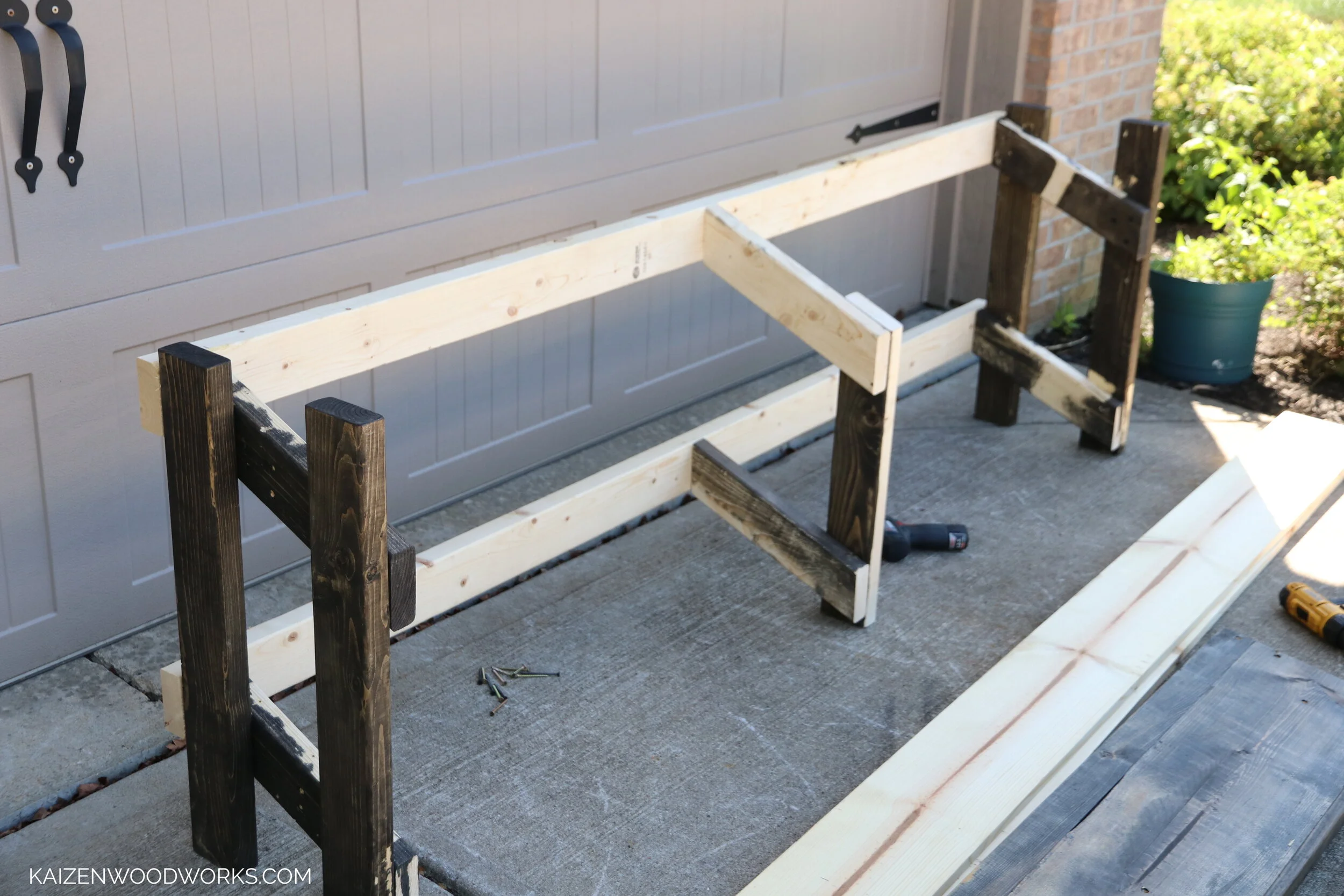 After disassembling, the only pieces I’ll be able to reuse are the sides. To help support the additional length, I have added 2x4’s along the back.