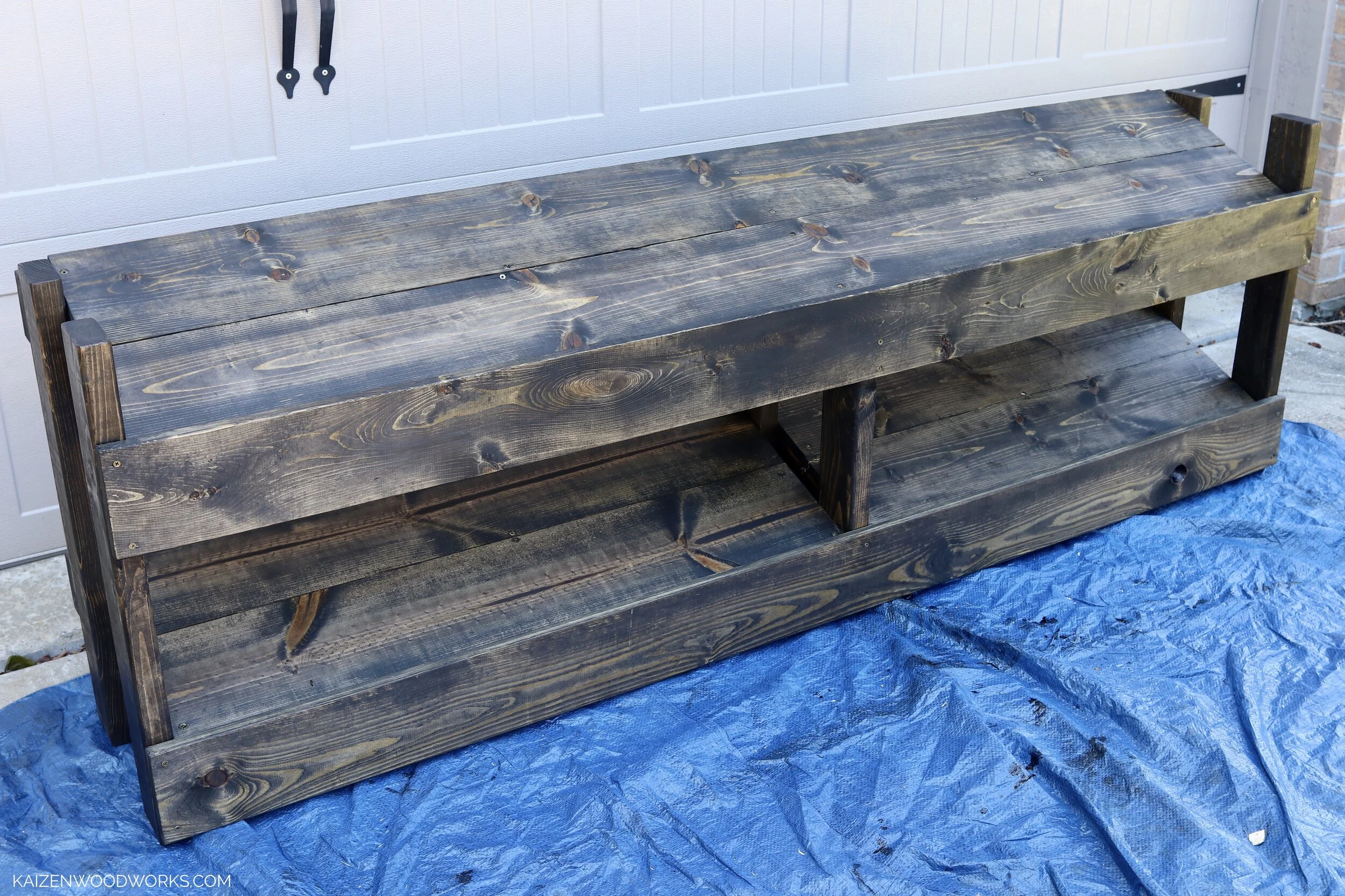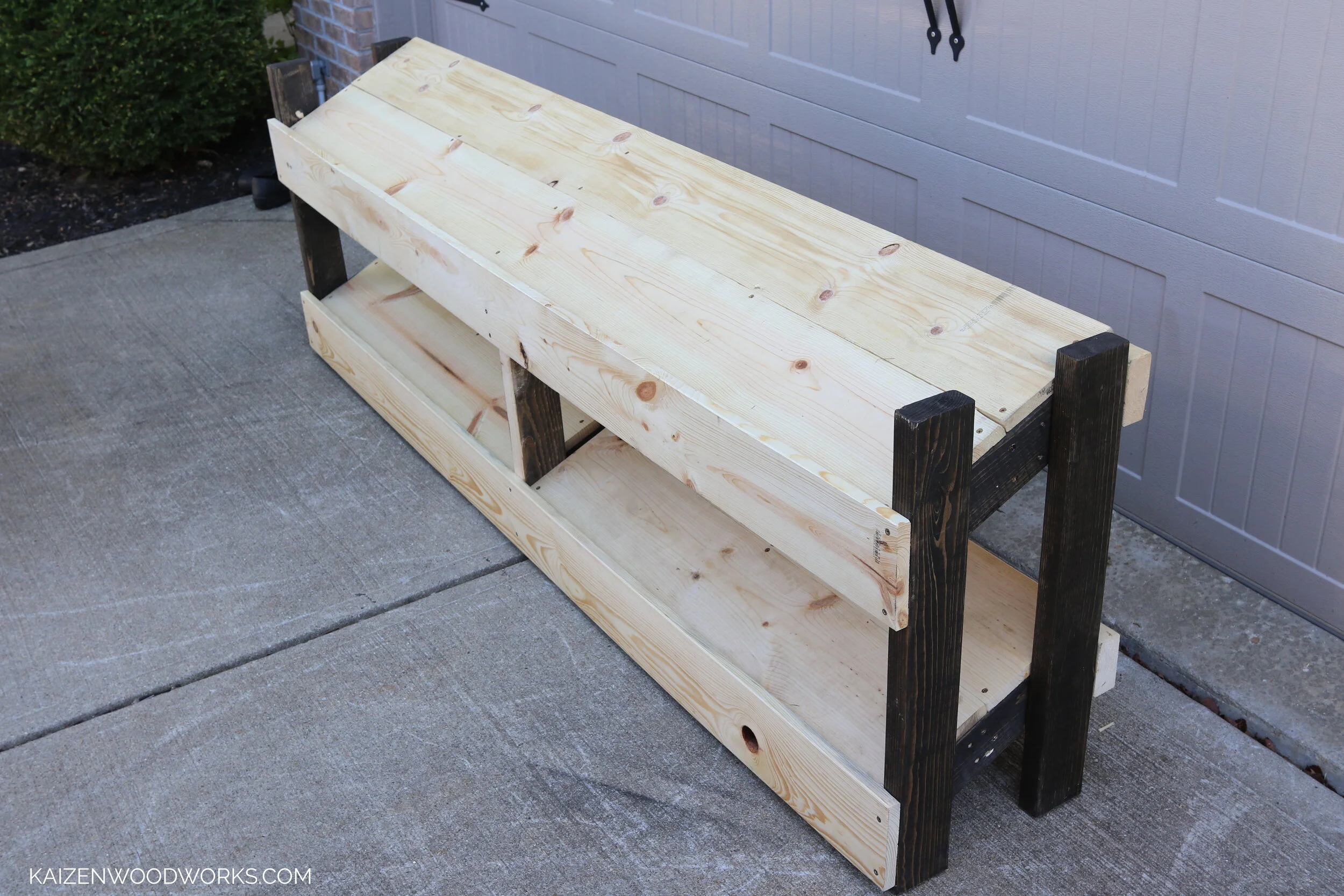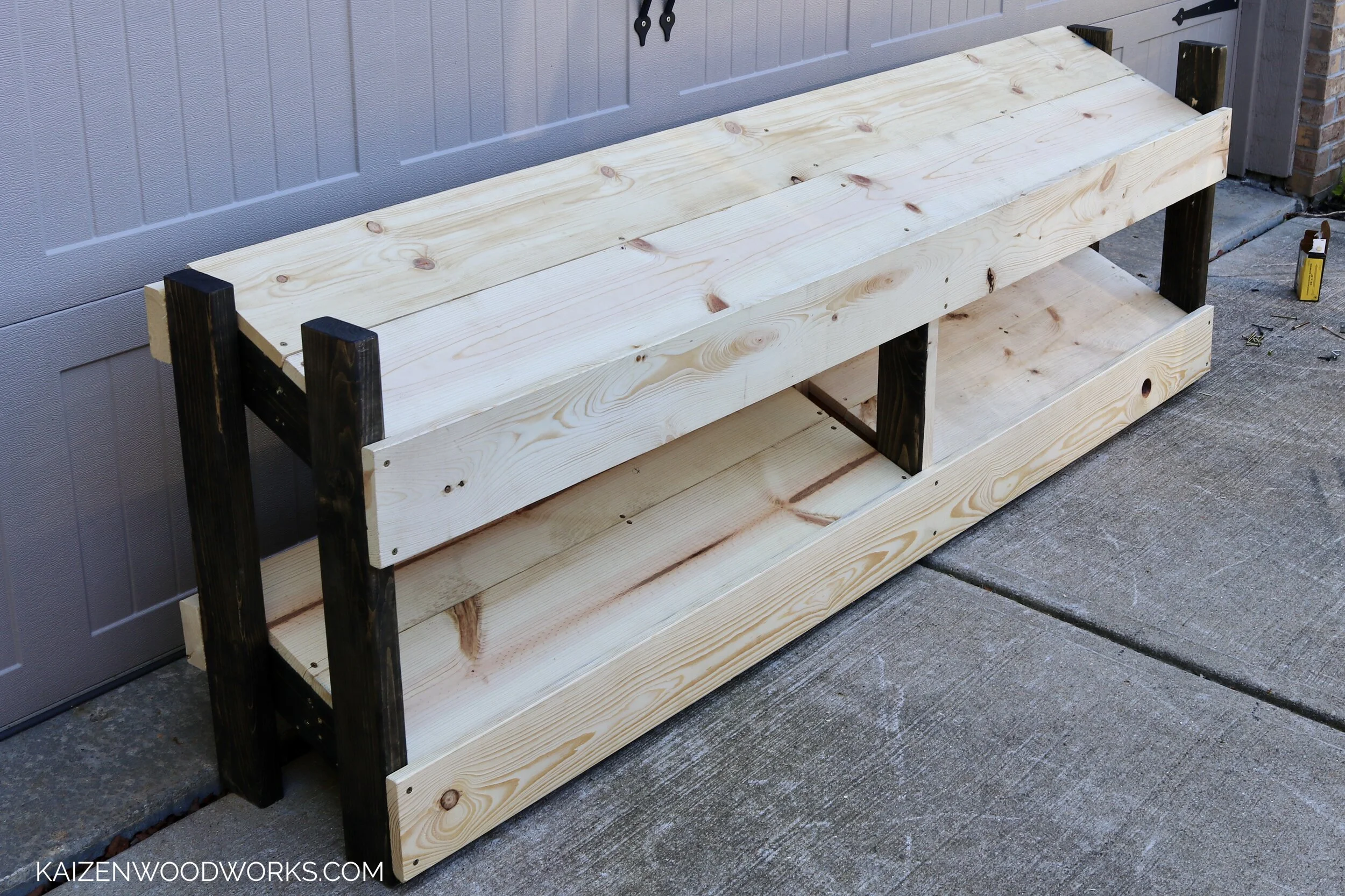 I add two 84” long 1x6’s to the front. I used a round over bit on the table router to round the edges before attaching.