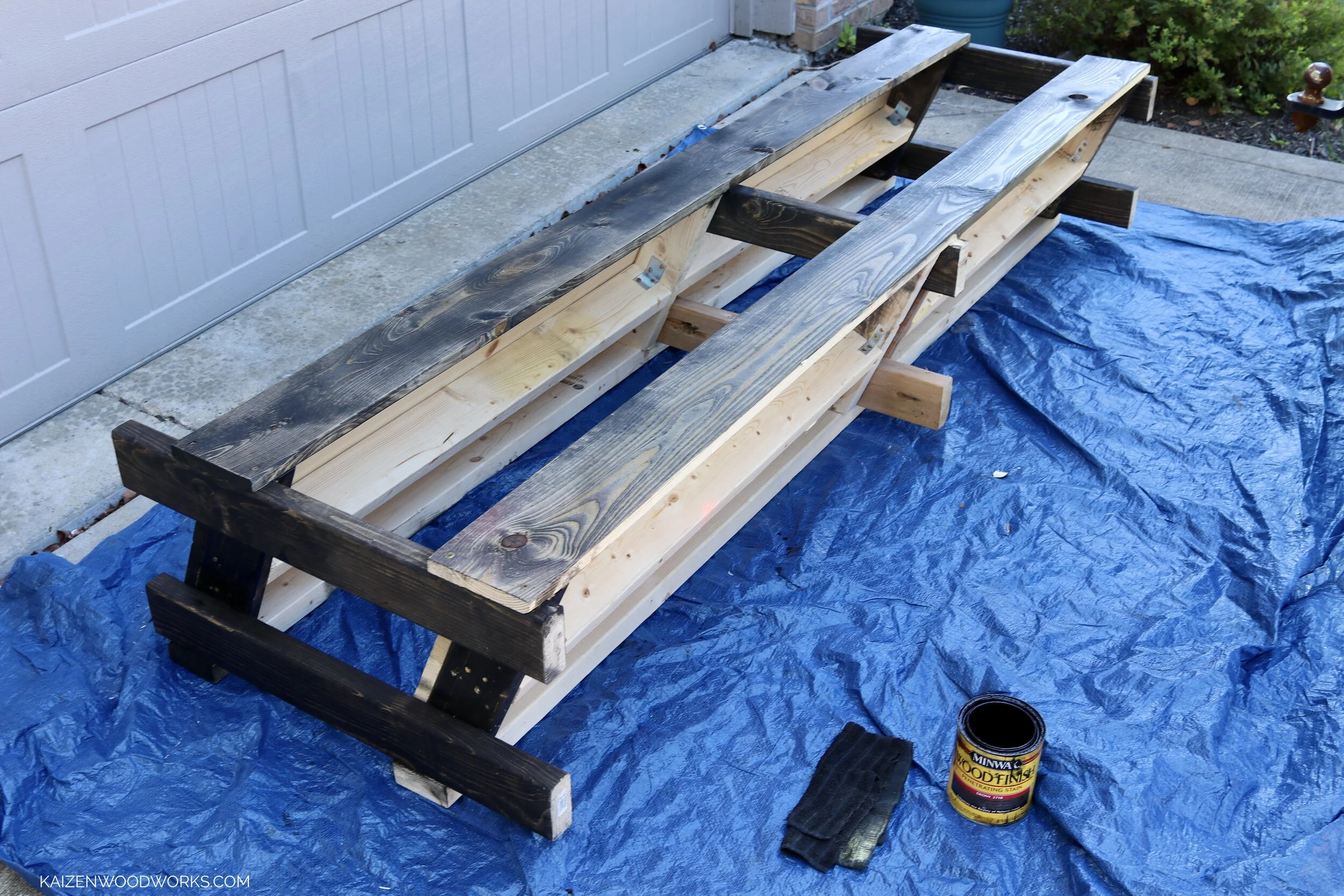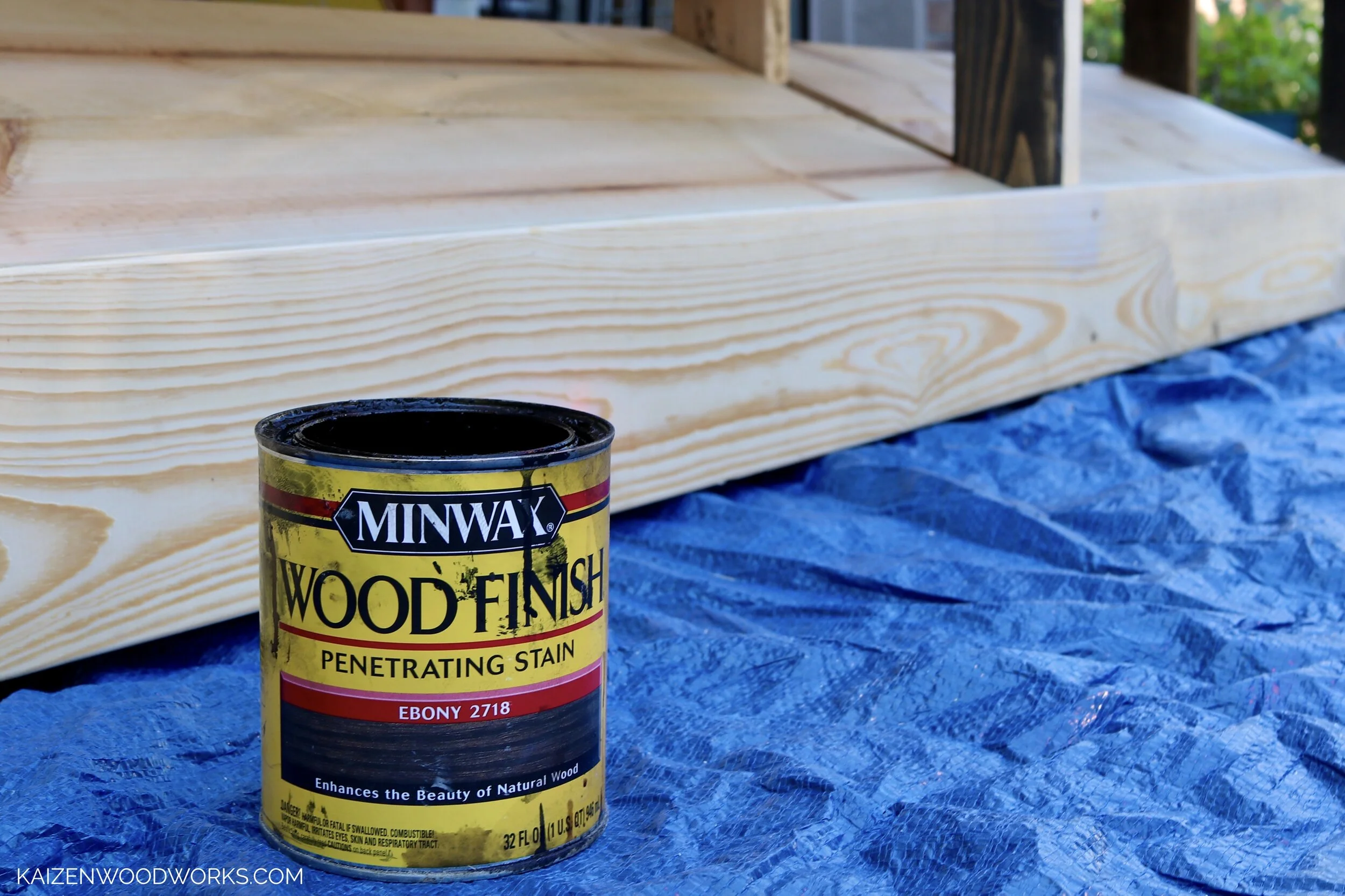 In order to match the wood that is already stained, I’ll be using Minwax’s Ebony color. It is a nice dark, almost black color but still lets the wood grain show through. Perfect for a home gym.