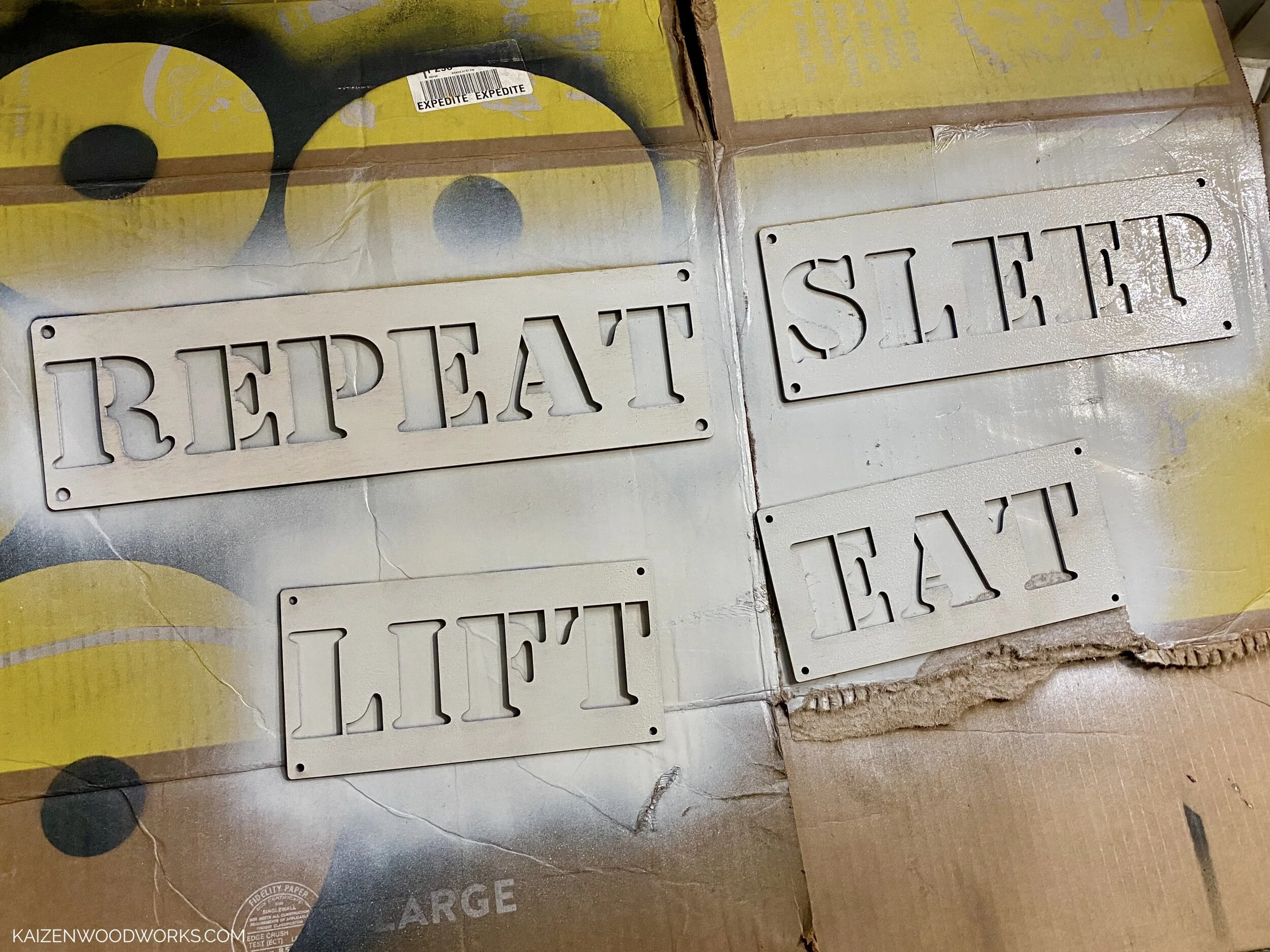 I use my Glowforge to cut some motivational words to attach to the front. If you’d like to do this, the digital cut files are available for free download. I use 1/8” Baltic Birch, but it could just as easily be done with vinyl on a Cricut or even spray paint and stencils.