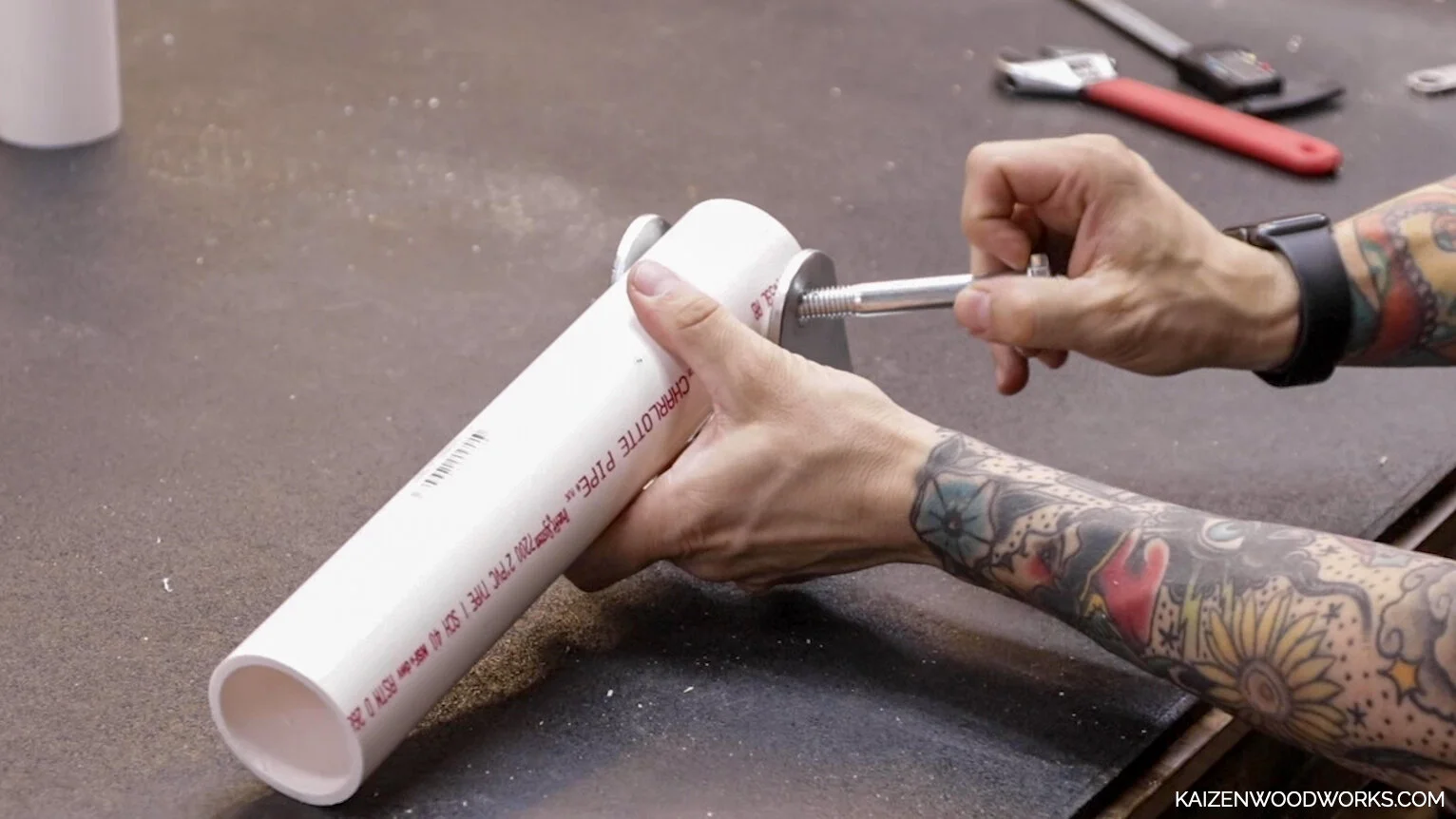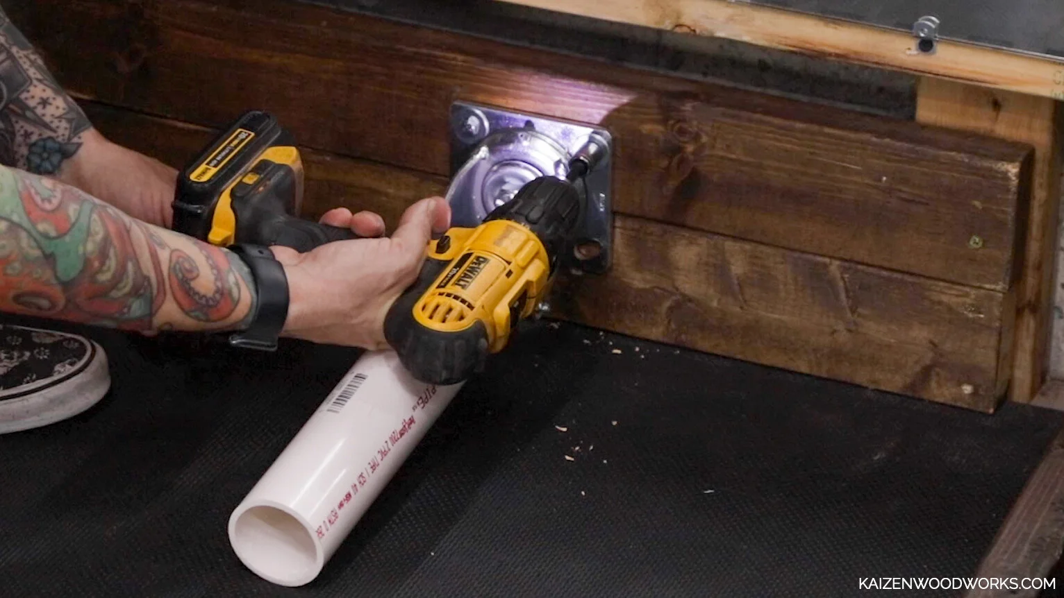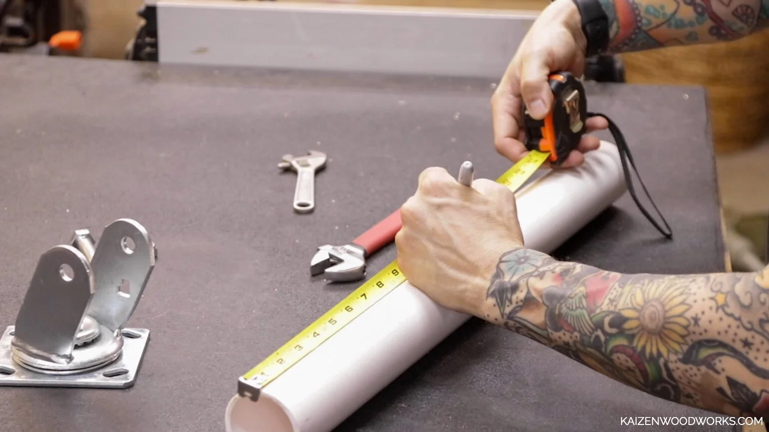 Your standard mitre saw will easily cut plastic pipe. I’ve also seen people use metal pipe, but plastic is durable and much easier to cut and drill through