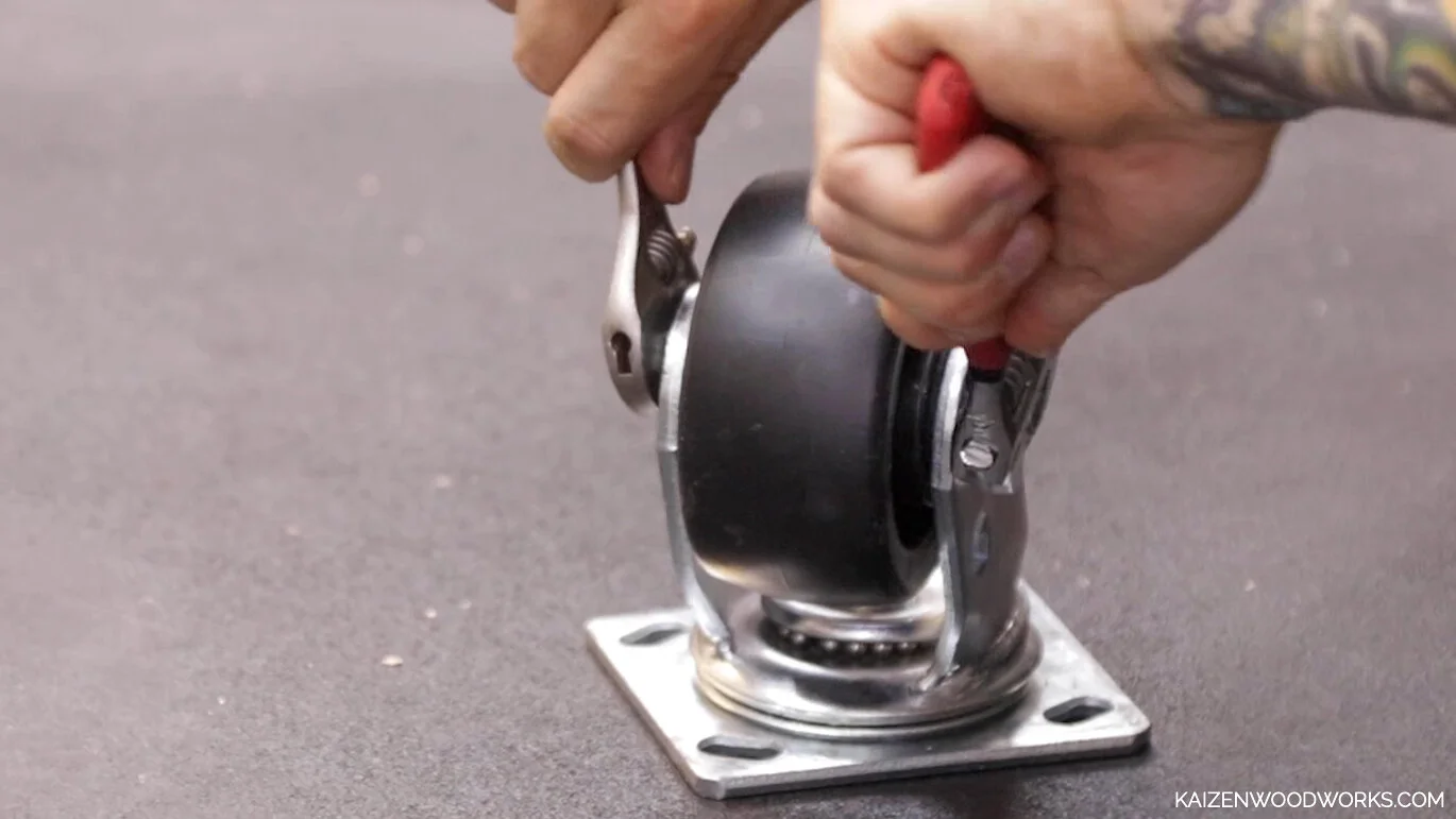 I use a swivel caster for this because I want a wide range of movement. You can also use a fixed caster if you only need up and down movement.