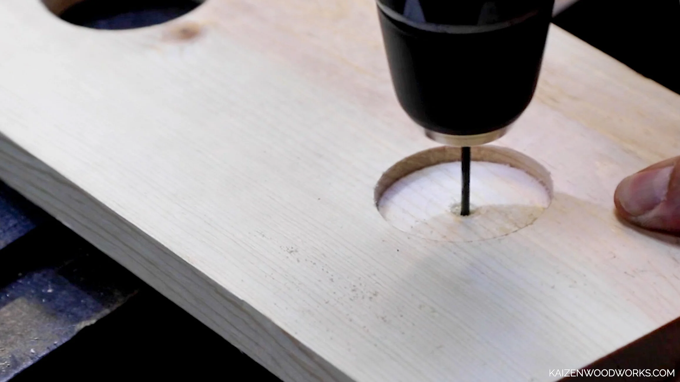 I use a 1.75” bit to make insets for the dowels. These are not very deep.