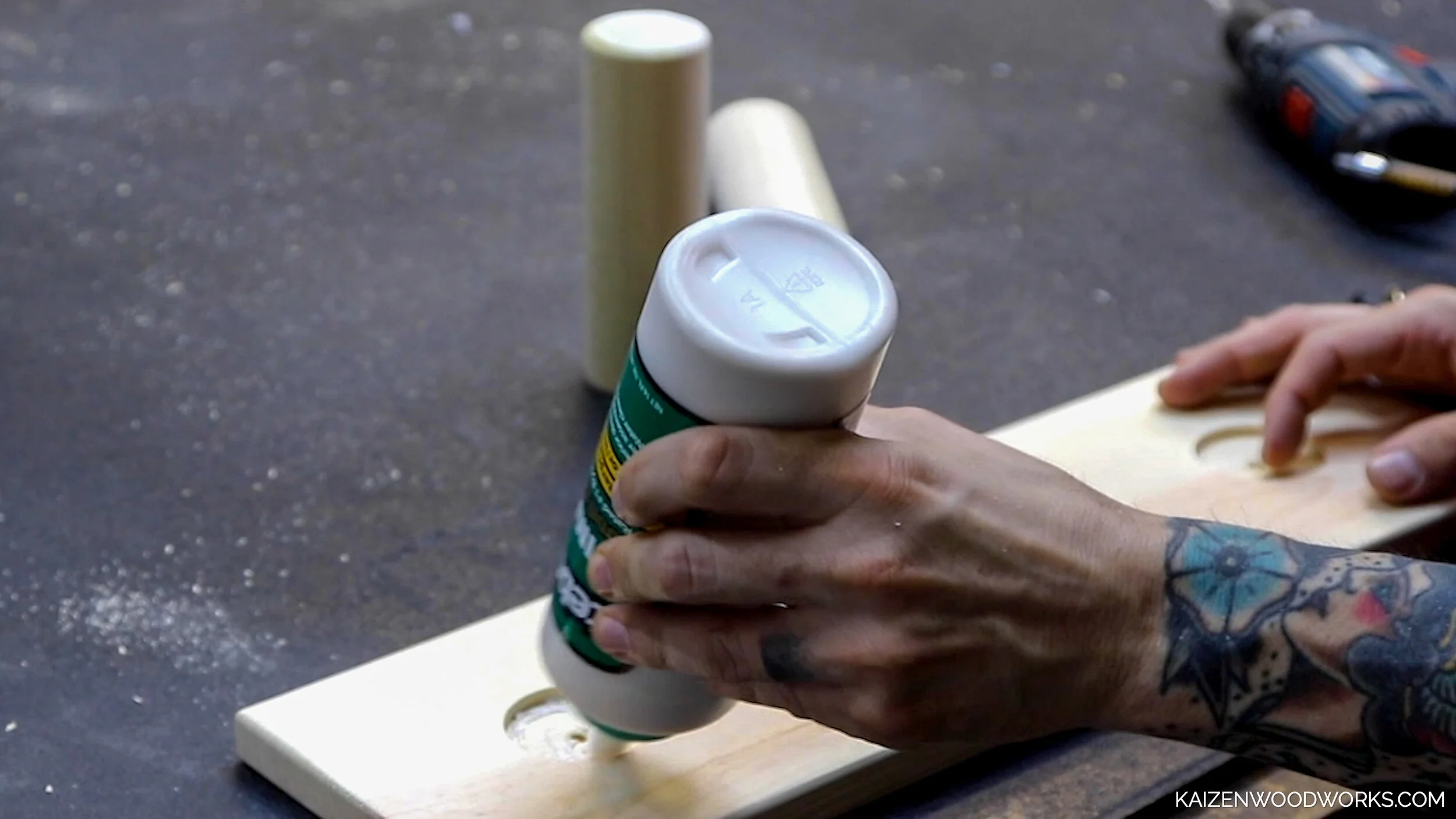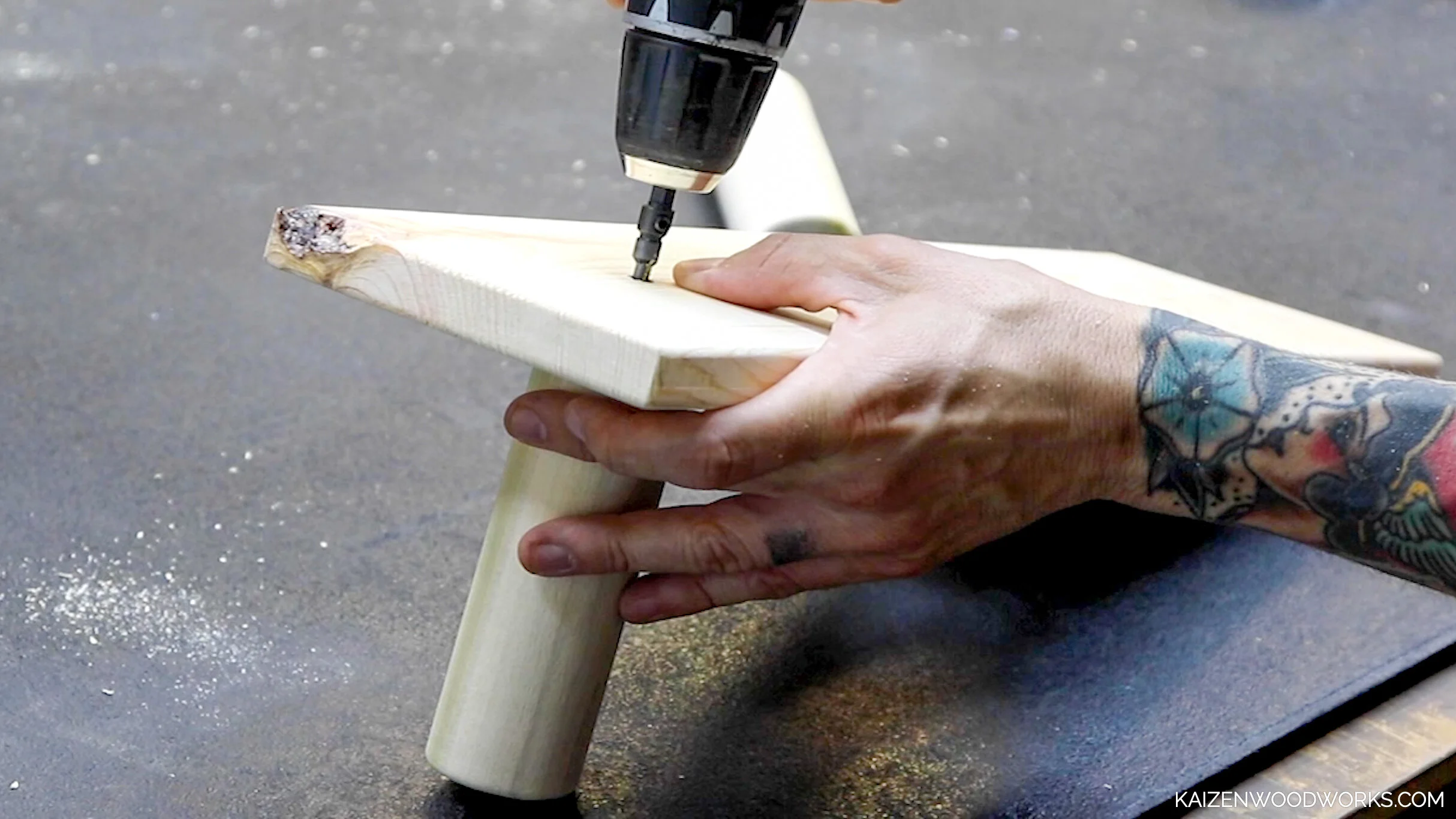 I add some wood glue before placing the dowel, then add a 2 inch screw. Repeat on the other side.