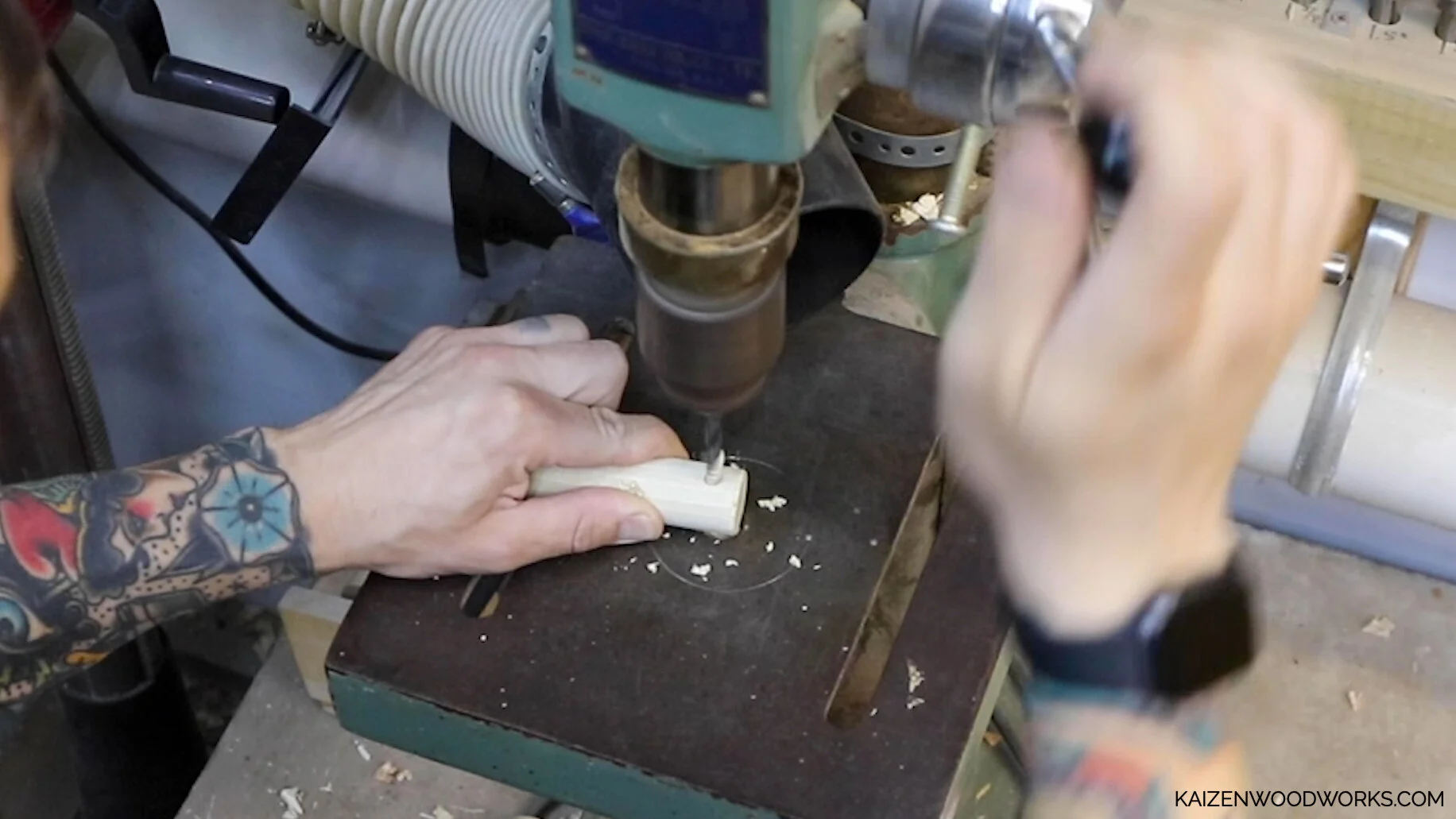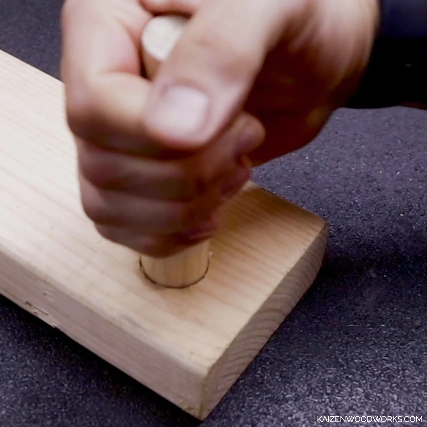 On each dowel, I drill a hole with a 1/4 inch drill bit. This is where the lynch pins will go.