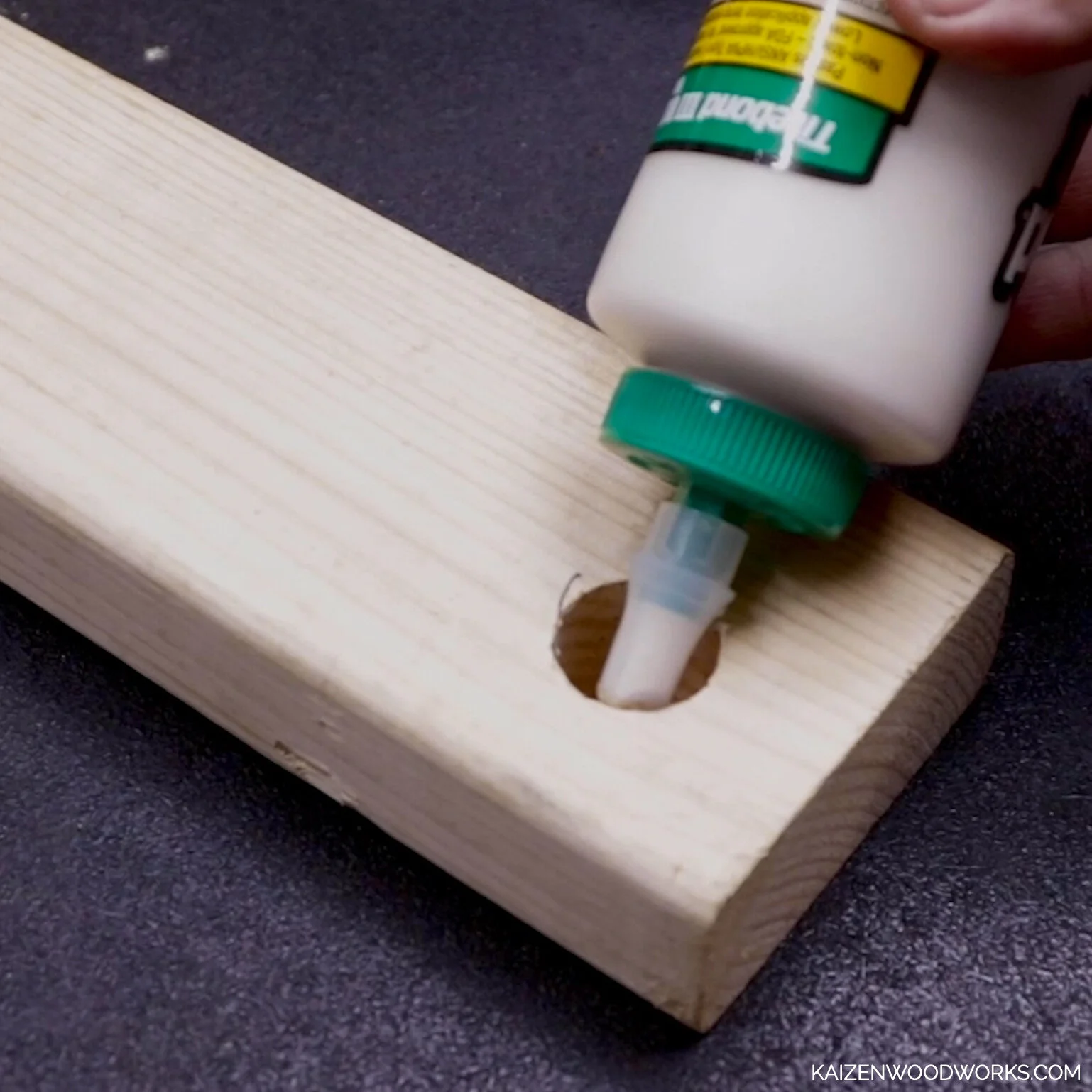 I use wood glue and 2 inch lag screws to secure the dowels in place. I predrill the holes before the lags go in.