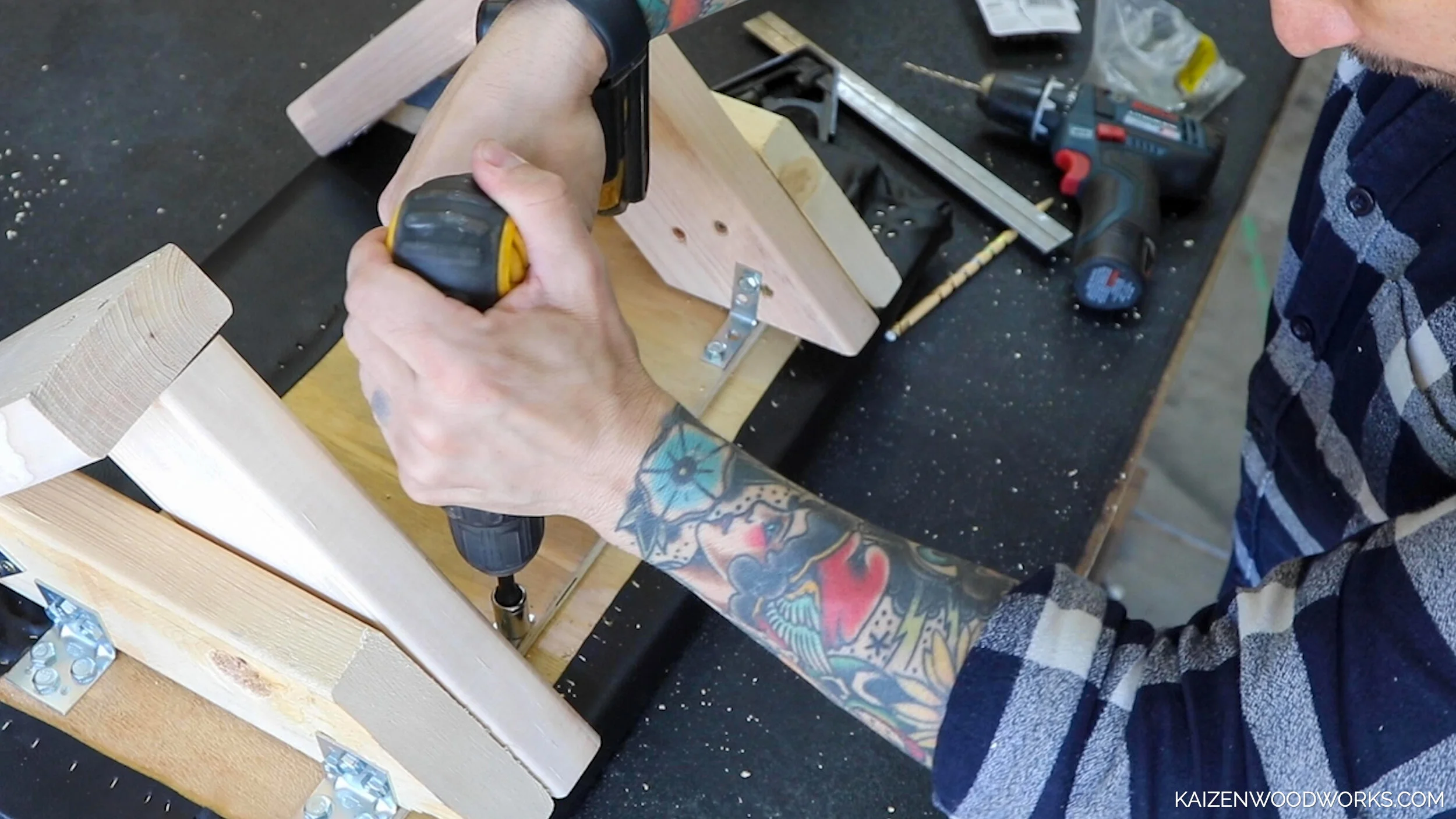 First I assemble the supports. I use mending plates and rafter ties to help secure everything together.