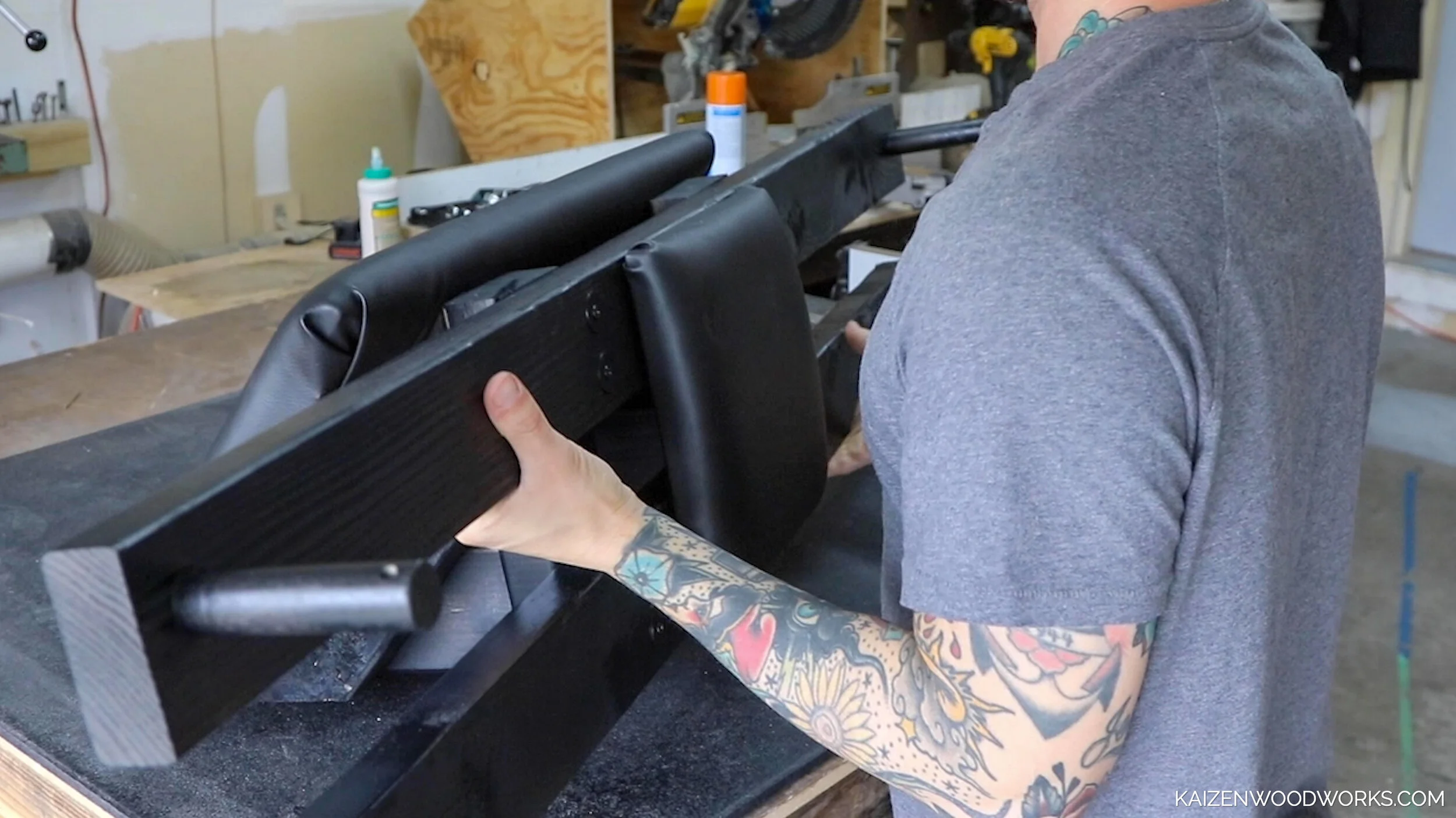 I cut one down to size and attached it with screws and finishing washers. It doesn’t look as fancy as the upholstered pad, but it is just as functional.