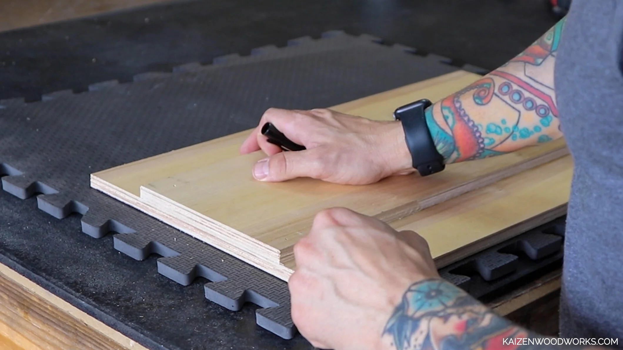 The pad for my preacher curl is made from 1/2 inch thick plywood. The width of my sheet is already 24 inches, which is what I want, so I cut a 15 inch piece and a 10 inch piece.